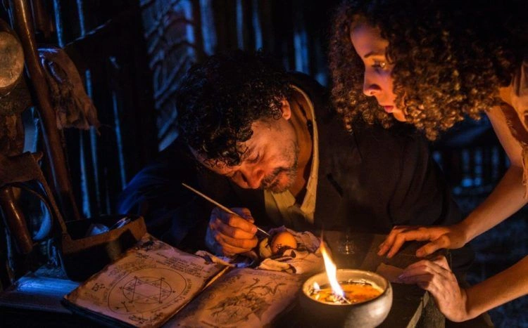 O capixaba Rodrigo Aragão é um dos principais cineastas de horror do Brasil. Além de qualidade nas maquiagens (a grande especialidade do artista), seus filmes possuem uma bem-vinda ambientação, cuja principal característica é o aproveitamento de traços de mitologias brasileiras. Diferentemente de outros artistas do gênero, que acabam mimetizando boa parte do que os cinemas norte-americano e europeu consolidaram, esse realizador se vale de pitadas generosas de regionalidade para contar histórias de demônios, mortos-vivos, chupacabras e, em A Mata Negra, de bruxas largadas à própria sorte na floresta, com habilidades além da compreensão. A protagonista é Clara (Carol Aragão), encontrada na mata por Pai Pedro (Markus Konka), sujeito que tratou de cria-la desde a mais tenra idade. Ele a sustenta vendendo “garrafadas” e outros produtos de sua sabedoria relacionada ao poder medicinal das plantas. Esse contexto se dá pela mescla funcional de diálogos expositivos com o testemunho de acontecimentos que deflagram a singularidade da menina “beijada” pelo mal. Poderosas forças ocultas a protegem.