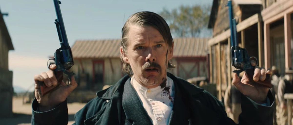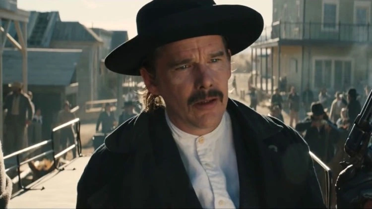 No Velho Oeste nem sempre é simples traçar limites entre certo e errado. Embora existam leis escritas, os comportamentos de mocinhos e bandidos frequentemente são similares ao ponto de borrar fronteiras já tão cinzentas. De acordo com as normas estabelecidas à melhor convivência em sociedade, Rio (Jake Schur) se torna inequivocamente criminoso quando executa o pai que espancava sua mãe até a morte. Porém, a ação se justificaria como medida protetiva do ente querido ameaçado, enquanto legítima defesa. Diante da revelação do assassinato, em momentos diferentes de Billy The Kid: O Fora da Lei, tanto o procurado Billy (Dane DeHaan) quanto o xerife Pat (Ethan Hawke) demonstram empatia pelo garoto separado da irmã sobrevivente, feita de refém por seu tio ansioso por vingança interpretado por Chris Pratt. Toda essa complexidade moral está ali colocada, à disposição de quem estiver procurando mais do que intensos instantes de duelo armado, ainda que não seja distribuída ao longo do filme, assim pouco reiterada pelo ator/cineasta Vincent D’Onofrio.