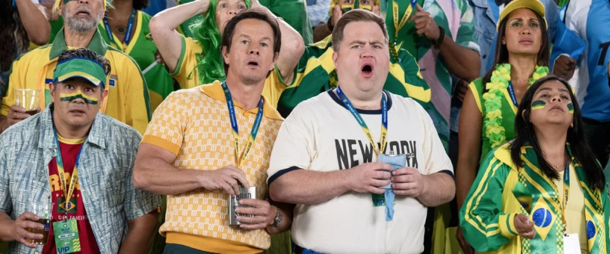 Em Bola Pra Cima , Brad e Elijah, dois executivos de marketing, são demitidos, e arriscam tudo ao criar uma linha de preservativos para a Copa do Mundo no Brasil. Após exagerarem na bebida, passam a ser perseguidos por diferentes lugares do país, tentando lidar com as consequências do que provocaram. Comédia .
