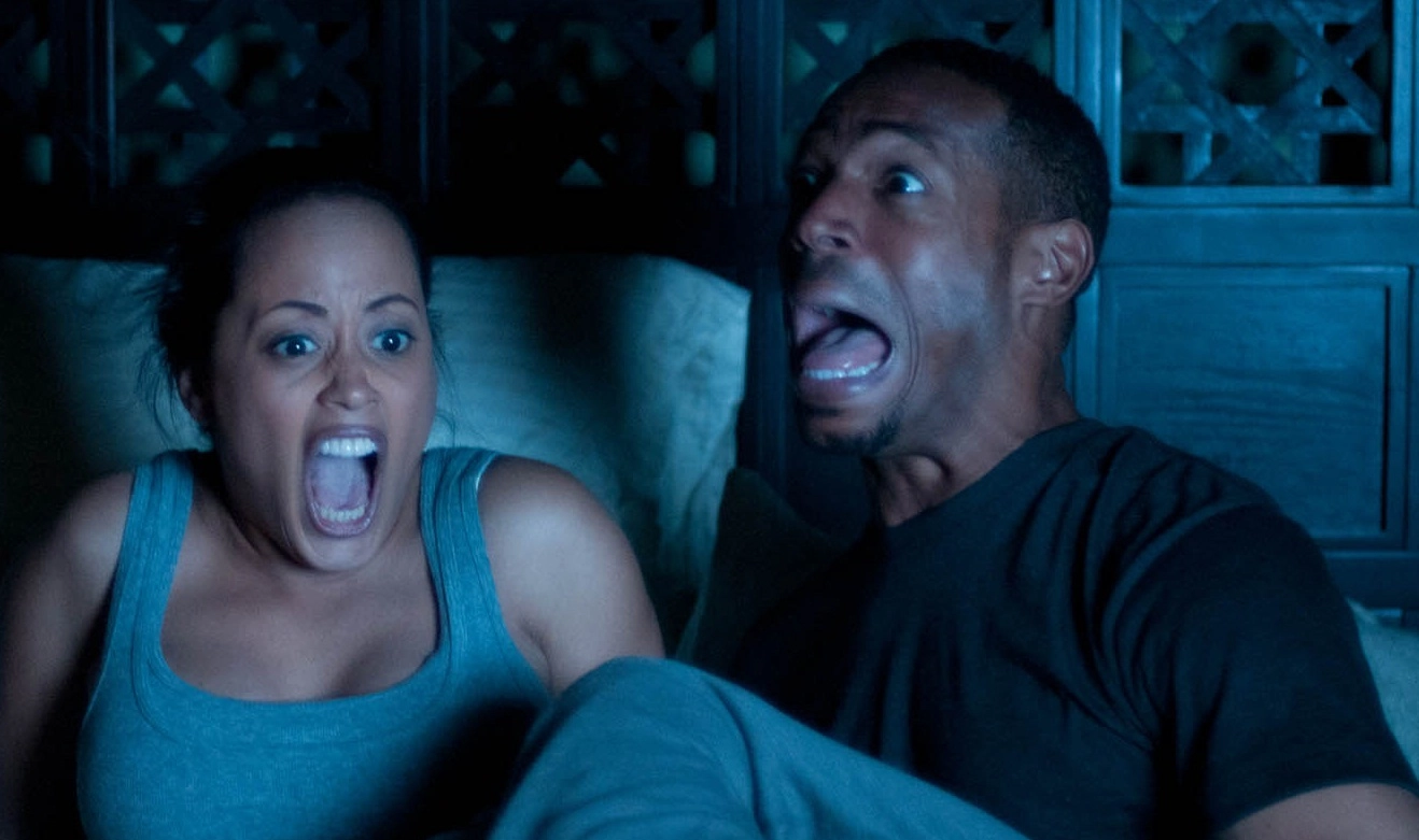 Completamente calcado no roteiro de Atividade Paranormal (2007) – nem inventar uma nova história eles foram capazes – o que temos em cena é o que acontece a partir do momento em que Kisha (Essence Atkins, que esteve também no filme anterior dessa trupe, o fracassado Ela Dança com Meu Ganso, 2009) decide ir morar com o namorado, Malcolm (Wayans). Exatamente como se passa no longa independente de terror sobrenatural que arrecadou milhões em todo o mundo, fatos estranhos e inexplicáveis passam a acontecer na casa dos dois. O curioso, no entanto, é perceber a indefinição do diretor Michael Tiddes (estreando num longa-metragem) sobre qual caminho seguir: se será o do simples besteirol, o da evidente piada calcada em sucessos anteriores de bilheteria ou se a graça virá do humor físico dos personagens. E, ao atirar para todos os lados, ele acaba errando todos os alvos.