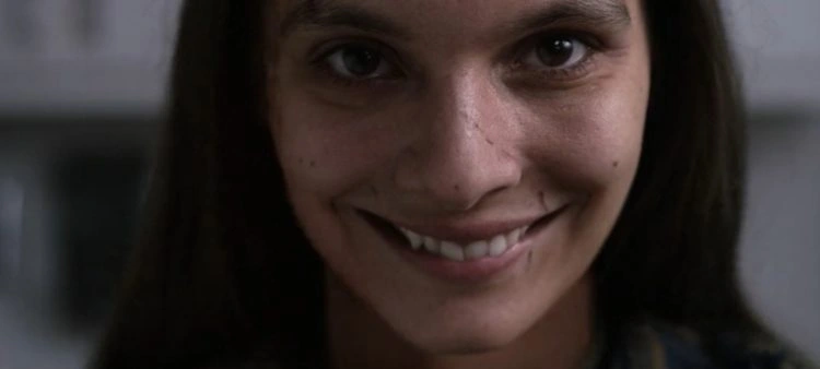 O cineasta Parker Finn utiliza abundantemente o jumpscare como princípio na tentativa de gerar aflição. Incapaz de construir uma atmosfera densa de apreensão, ele opta pelos famigerados sustos como A estratégia para manter o espectador acordado durante um enredo que não consegue sequer maquiar as suas fragilidades. O jumpscare é aquela técnica que consiste numa mudança abrupta de eventos (geralmente marcada por um som estridente) que tem por função gerar susto. Como toda a estratégia e/ou elemento utilizado anteriormente à exaustão, o jumpscare tende a não ser eficaz como era em outros tempos, a não ser que a pessoa encarregada da direção o combine com outras ferramentas narrativas que potencializem seus efeitos. Então, criminalizar a técnica apenas por ela se tratar de um clichê de gênero seria, por exemplo, invalidar o brilhantismo com o qual Stanley Kubrick a utiliza em O Iluminado (1980) – quando o jumpscare já era considerado um lugar-comum, diga-se de passagem. Contudo, no filme baseado na obra de Stephen King o susto arremata a construção de uma inquietação quase sufocante. Já neste longa-metragem ele é o carro-chefe. Sorria é recheado de sustos que causam sobressaltos breves. Se ao menos as surpresas fossem menos previamente denunciadas (e assim deixam de ser surpresas, obviamente), o suspense poderia se tornar um bom aliado para manter o medo.