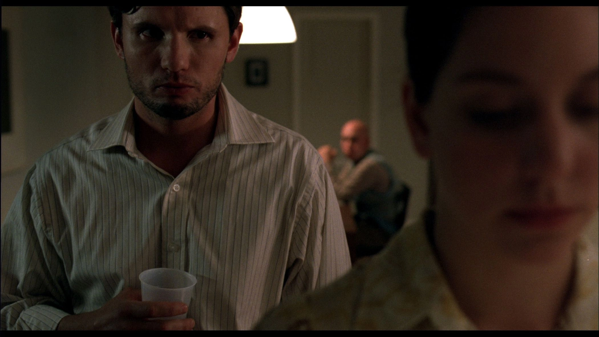 O estilo de filme realizado por Nathan Silver em The Blind poderia ser chamado de cinema do desconforto. Tanto para os personagens quanto para o espectador. Kate, por exemplo, tem uma forma de se locomover muito contida, como se ela nunca estivesse realmente confortável em momento algum, como se qualquer movimento mais largo pudesse parti-la em pedaços. Já Marcus está constantemente tenso. Até mesmo quando tenta ser amoroso, ao beijar sua namorada no pescoço, o movimento que ele empreende até ela é duro, teso. Existe uma pressão em cima dele pelo sucesso, pressão esta talvez autoimposta. Com um funcionário verborrágico ao seu lado, e que tem em sua total falta de iniciativa uma das suas piores qualidades, Marcus se encontra em processo de desmoronamento.