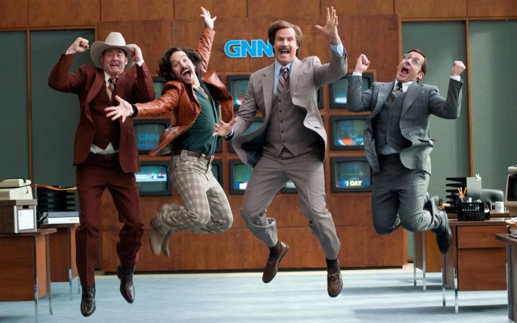 Mesmo assim, ao longo da projeção o filme tem belas sacadas e consegue divertir com seus personagens. É engraçado ver, por exemplo, a cena em que Ron e sua equipe precisam pensar nas notícias que colocarão em sua transmissão e vetam uma que fala sobre a China estar se tornando uma superpotência econômica, já que isso é considerado improvável. Ferrell e McKay também não temem se repetir no roteiro, inserindo um combate entre várias equipes de telejornal que é praticamente igual a uma das melhores cenas de O Âncora, ficando diferente (e até mais engraçada) pelo fato de as participações especiais de alguns atores famosos serem totalmente inesperadas, como a de uma certa atriz ganhadora do Oscar. Mas nada supera o pequeno acidente que Ron e seus amigos sofrem em um trailer, quando McKay faz uso do slow motion de maneira absolutamente hilária.