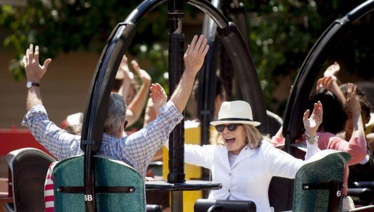 Acompanhando de perto esse imbróglio familiar, há Leah (Keaton), a senhora que mora ao lado de Oren. Também viúva, ocupa suas noites cantando profissionalmente num bar próximo e faz da tarefa de amolecer o coração do vizinho intransigente um desafio a ser superado. Há outros personagens secundários, como o casal grávido, a mãe de duas crianças hiperativas e o pianista galanteador de peruca. Um grupo que serve apenas para formar cenário aos protagonistas, dois tipos tão antagônicos que somente na ficção poderiam ficar juntos do jeito que aqui iremos presenciar.