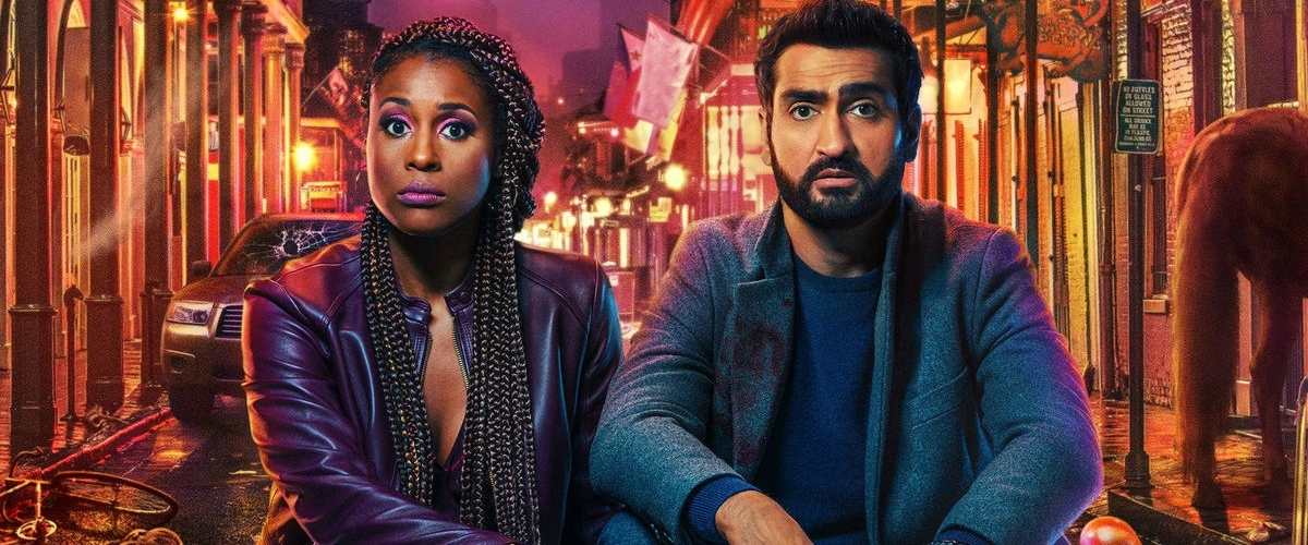 No filme de Michael Showalter – o mesmo de Doentes de Amor (2017), que rendeu uma indicação ao Oscar para o roteiro escrito por Nanjiani – Jibran e Lailani (Rae) se conhecem, se apaixonam e, quatro anos depois, mal se aguentam mais. E tudo isso antes dos créditos de abertura. Apenas para deixar claro que se tratam de duas pessoas decididas a não mais permanecerem juntas, por mais que o passado que as uniu tenha sido belo (ainda que breve). Pois bem, estão no meio de uma discussão, rumo a uma festa de amigos, quando atropelam um ciclista. Ao tentarem ajudá-lo, o rapaz opta por sair correndo. Ainda sem entenderem o que aconteceu, um estranho surge (Paul Sparks, de House of Cards, 2015-2018) anunciando ser da polícia, e que o fugitivo é um ladrão que estava sendo perseguido por ele. Os três partem no encalço do outro e, quando o encontram, ao invés de prendê-lo, o desconhecido – que estava na condução do veículo – opta por atropelá-lo novamente. E de novo. E de novo. Até matá-lo de uma vez por todas.