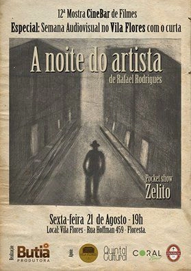 O curta-metragem A Noite do Artista (2011), de Rafael Rodrigues, será exibido no dia 21 de agosto, às 20h, em Porto Alegre, na Vila Flores (Rua Hoffmann, 459). O evento contará com coquetel de degustação de cerveja uma hora antes da sessão e pocket show do Zelito, milongueiro, com dois discos lançados e várias parcerias no currículo, como o uruguaio, Daniel Drexler. A exibição faz parte da programação da Semana Audiovisual no Vila Flores da Mostra CineBar, que realiza exibições mensais de filmes independentes.