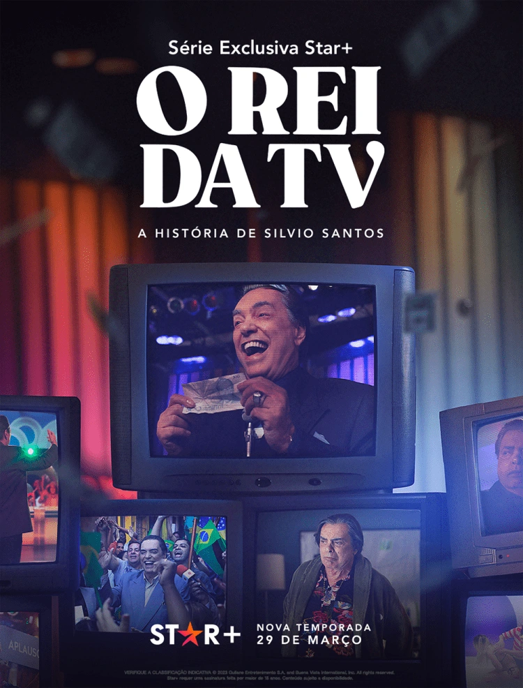 Tendo estreado sua primeira parte no final de 2022, a série O Rei da TV está de volta em menos de seis meses! A trama que conta, sob livre inspiração, a trajetória do empresário e apresentador Silvio Santos tem sua data de retorno ao streaming marcado para 29 de março, com oito novos episódios de 45 minutos cada. E para ir aquecendo os fãs, o Star+ lançou trailer e cartaz oficiais dessa segunda temporada, mais uma vez protagonizada por José Rubens Chachá. Nas cenas, é possível conferir passagens icônicas de Silvio, como quando foi postulante à Presidência da República, e também o sequestro da filha Patrícia Abravanel.