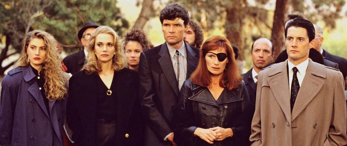 A morte da linda Laura Palmer (Sheryl Lee), cujo corpo é encontrado envolto em plástico, boiando no rio, numa imagem rapidamente tornada icônica, desencadeia uma série de eventos que mostram o lugar como um inusitado depósito de segredos, intrigas e mistérios, elementos dissociados, num primeiro momento, de suas vistosas paisagens, repletas de bosques e charme rústico. Esse é um conceito recorrente na filmografia de David Lynch, como visto, principalmente, no longa-metragem Veludo Azul (1986), no qual também se acessava o subterrâneo sórdido de um interior aparentemente pacato e ordenado. O agente do FBI Dale Cooper (Kyle MacLachlan) desembarca nesse cenário idílico, porém machucado, para investigar a morte da jovem, e acaba se afeiçoando às pessoas, ao clima campestre e aos donuts que adoçam os interlúdios dos processos investigativos. Cooper é um sujeito carismático, visto com os semelhantes estranhamento e simpatia fraternal com que encaramos, por exemplo, a senhora dada a andar embalando e trocando ideias com um tronco. Aliás, um dos grandes méritos de Twin Peaks está na exímia construção dos personagens, atenta às minúcias e, ao mesmo tempo, preocupada em encaixar as singularidades num mosaico maior.